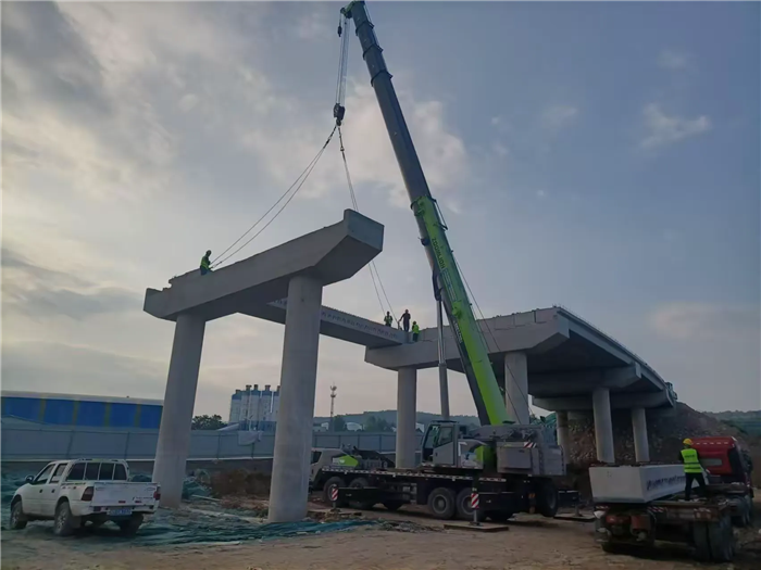 市區(qū)向第2跨空心板架設(shè)完成。